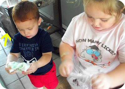 Then mix like your life depends on it! Since we used two wet ingredients ours took quite some time to mix (half an episode of the smurfs).